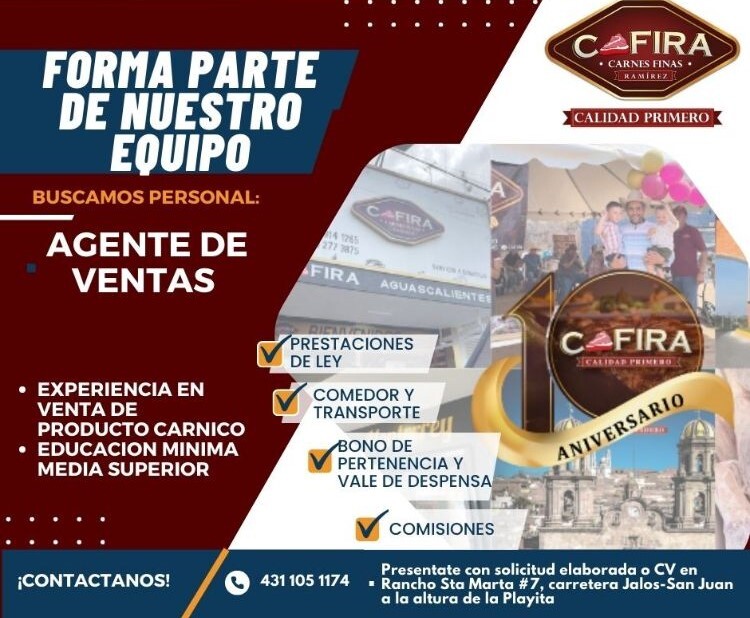 - Experiencia en venta de producto cárnico.
