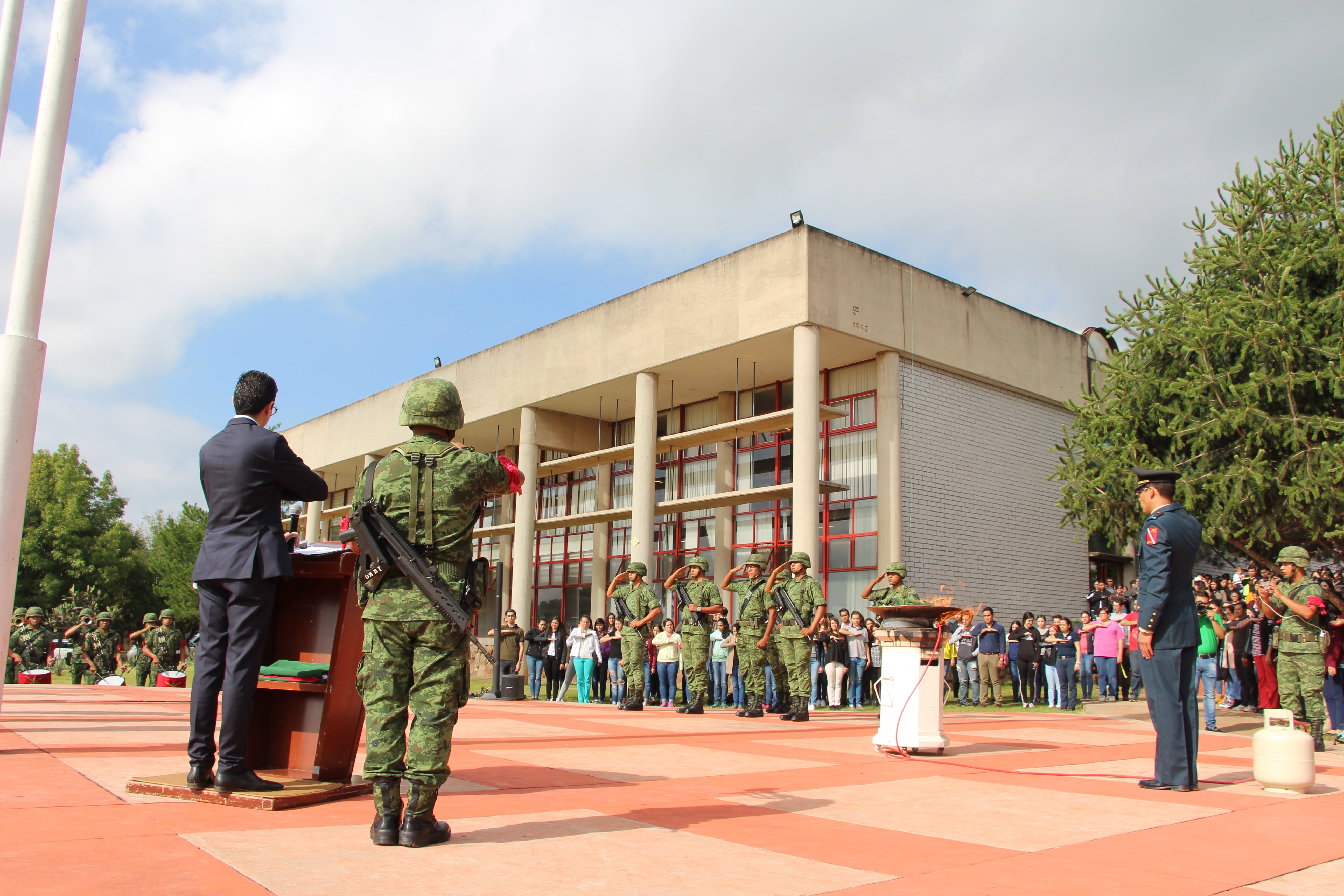 La Bandera de México que ondeó por poco más de año y medio en el asta del Centro Universitario de Los Altos (CUAltos) de la Universidad de Guadalajara (UdeG) fue homenajeada y despedida mediante un acto de incineración dirigido por elementos del Ejército Mexicano, pertenecientes al 92 Batallón de Infantería.