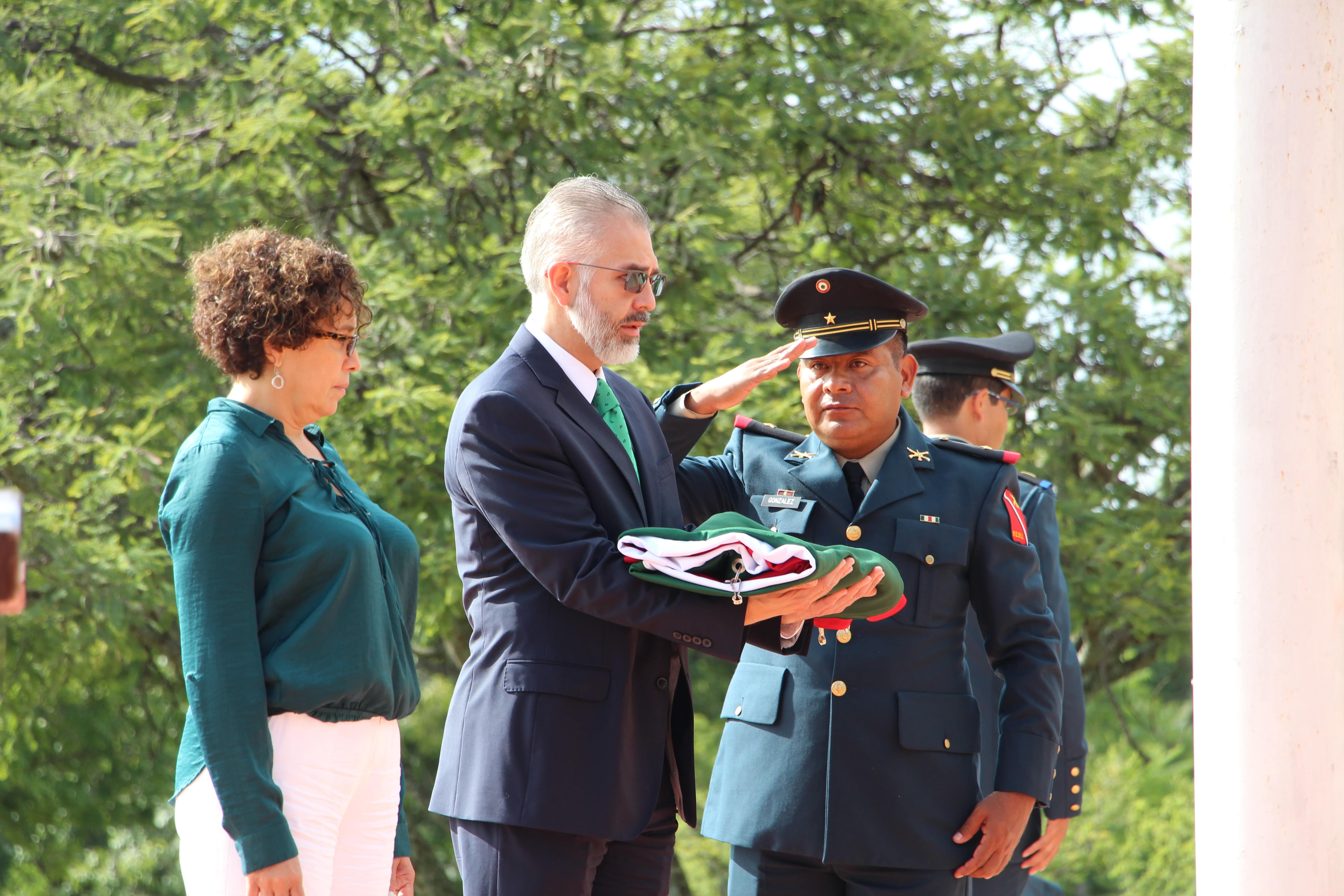 Los honores, integrados por el canto del Himno Nacional y la Escolta a la Bandera, y su posterior incineración, corrieron a cargo en su totalidad por el personal de la Secretaría de la Defensa Nacional (SEDENA).