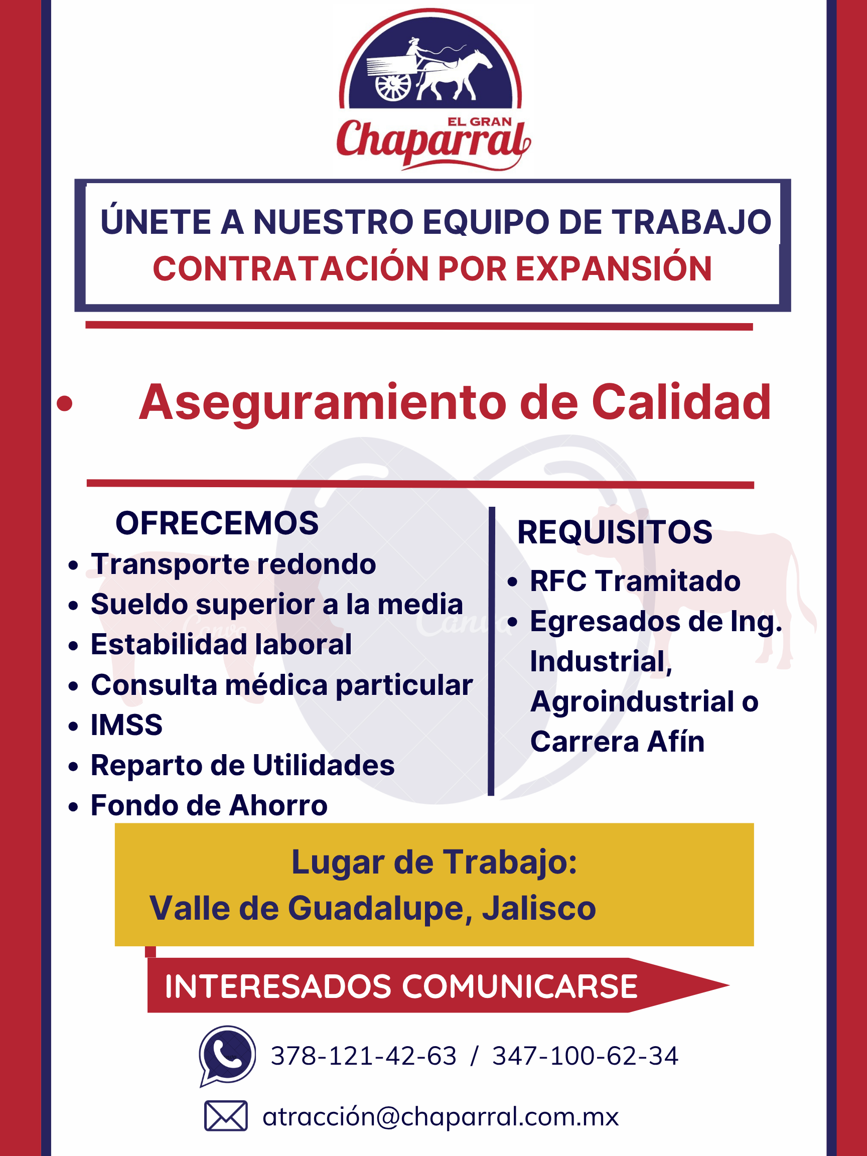 Lugar de Trabajo de la Vacante: Valle de Guadalupe, Jalisco.