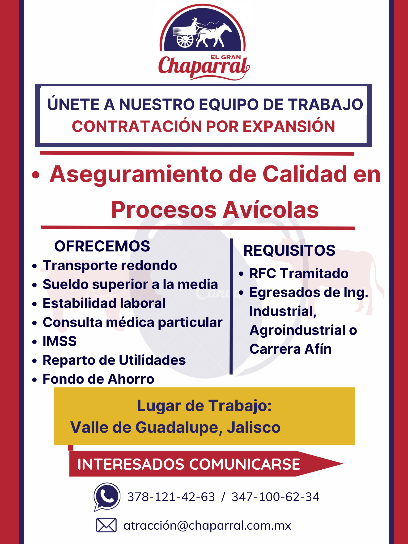 Título de la vacante: Aseguramiento de Calidad en Proceso Avícolas