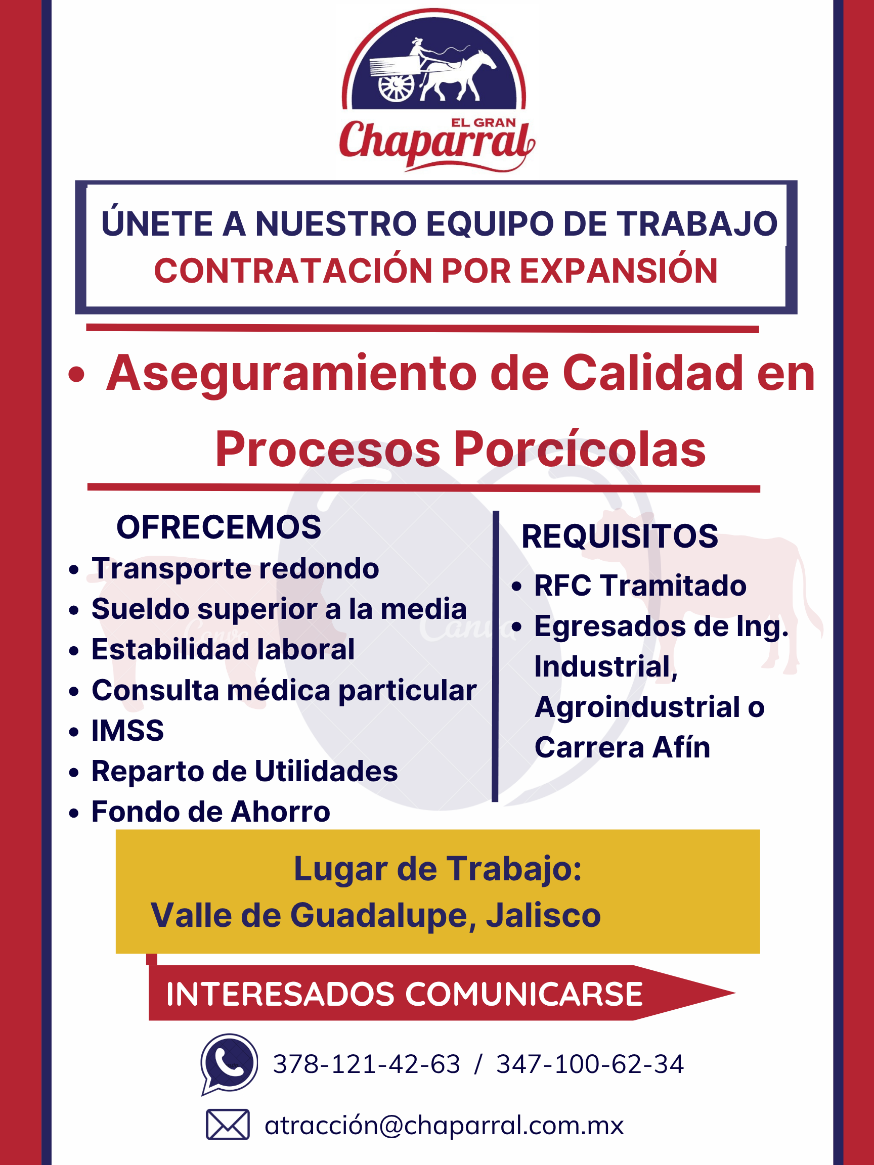 Título de la vacante: Aseguramiento de Calidad en Procesos Porcícolas