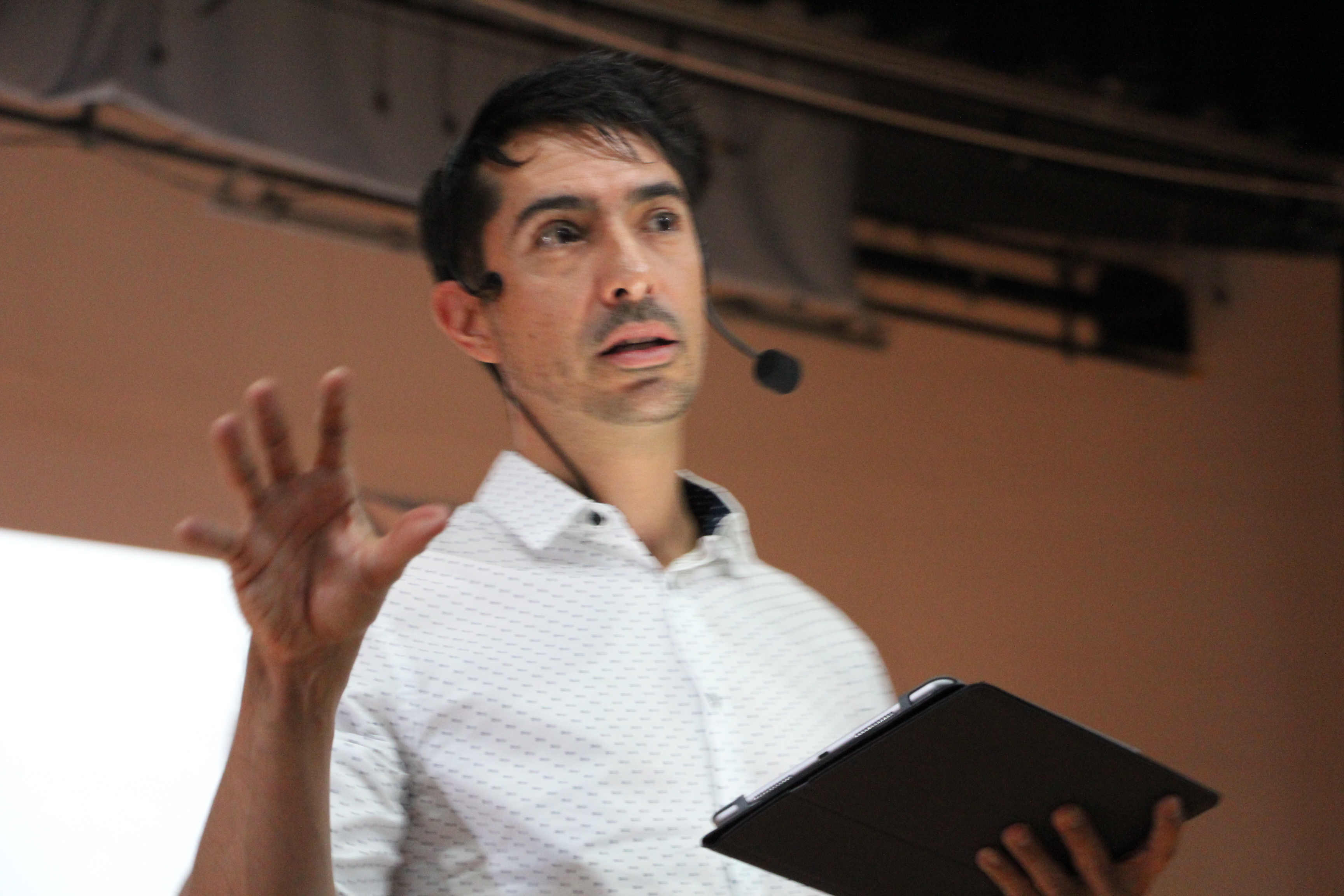 En la charla que impartió en el Auditorio Rodolfo Camarena Báez, el colombiano presumió que la empresa avícola Huevos Kikes está comprometida con el medio ambiente, pues para marzo de 2017 comenzarán a generar biocombustibles a partir de las excretas de las gallinas.